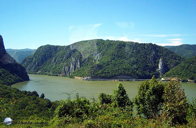 Hamarosan ismét megálltunk és fényképeztünk a Kis-Kazán szorosnál, ami 3,6 km hosszú és 150-350 méter széles. Mraconia-öböl bejáratánál látható a román oldalon egy hatalmas fej alakú szobor a sziklafalban. Ez Decebál dák király szobra, aki Kr. u. 80 és 106 között egyesítette a törzseket a rómaiak ellen.