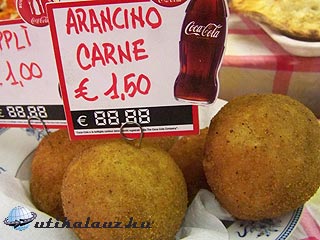 Nagyon szép a tér, bár nagyon zsúfolt volt. Karikatúránkkal a hónunk alatt elsétáltunk a térről. Betértünk egy kajázóba, szendvicset és rántott rizsgombócot ettünk (arancini carne-nak hívták).