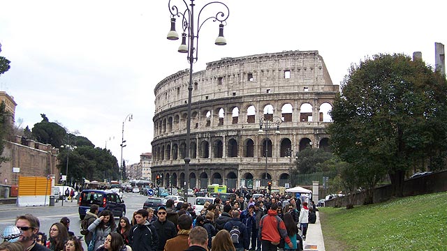 Az egész délelőttös kitérő után visszabuszoztunk Róma történelem szagú levegőjébe. A nap hátralévő részében következett Róma szíve, a Colosseum, Forum Romanum, Capitoleum, korba nem illik ide, de nem hagyhatom ki a Vittorio Emanuele emlékmű. A Colosseumhoz mentünk… igen… egészen közel, majd végül bele. A Róma Passal könnyen bejutottunk, mert külön kapunk volt. Már ezért is megérte Roma Pass-t vásárolni, mert nem kellett sorba állni. Mi ezt választottuk az első ingyenesen beléphető, múzeumnak. A kombinált jegy egyébként Colosseum, Forum, és Palatinus múzeum: 13,50 euróba került volna.