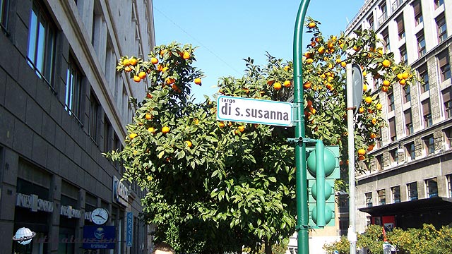 Végig sétáltunk a Leonida Bissolati utcán, amelynek mind két oldalán narancsfák voltak, tele érett narancsokkal.