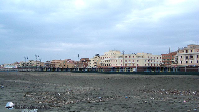 Már késő délutánra járt. Lévén az utolsó nap, és a tenger látványa nélkül nem mehettünk haza, ezért vonatra ültünk, és a tengerpartra utaztunk. A vonat a Piramide metró állomástól indult, tömve volt utasokkal. Róma külvárosa látvány szempontjából eléggé hanyagolható. Fél óra múlva a Lido megállónál szálltunk le és ki gyalogoltunk a kb. egy km-re lévő partra. Megállapítottam, hogy nem szívesen nyaralnék itt. A partrész eléggé zárt, de találtunk egy kaput, ahol megközelíthettük a vizet. Szürke homokos a part és fizetősek a strandok. A tengerparton sétálgatva ért minket az este.