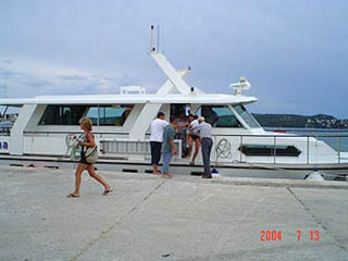 Estefelé kisétáltunk a üdülőtelepen kívülre, és megnéztük mikor megy busz. Sajnálatunkra nem volt kitéve egy buszmegálló tábla sem, pedig a busz rendszerint szemben az üdülőteleppel állt meg. Apukám rögtön rászokott egy horvát sörre, aminek egy sajátos becenevet adott: Barnamackó, mivel neve Karlovackó volt 🙂 (ára, amikor mi voltunk 4 kuna volt, most 6 kuna). Elhatároztuk, hogy befizetünk egy hajókirándulásra.