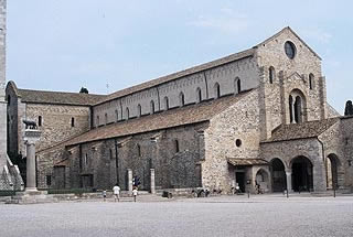 Innen az ókori Aquileiába vettük az irányt – ma egészen kicsi helység. Felmásztunk az antik kövekből később épített templomtoronyba, ami a nagyon magas lépcsők miatt igencsak megerőltető volt. Maga a koraromán templom csodaszép, különösen a szinte eredeti állapotában megmaradt padlómozaik, amit a fölé körbe tett plexijárdáról elég közelről meg lehet nézni. A templom előtt külön álló keresztelőkápolna is óriási élmény volt. A városkában sok helyen vannak különböző római maradványok, mozaikok, épületalapok, stb. amiknek egy részére a toronyból rá lehetett látni. Kiemelkedő lelet az itt, a templomtól pár száz méterre levő római kikötő, szinte hihetetlen, hogy mit tudtak építeni az antik időkben.