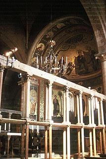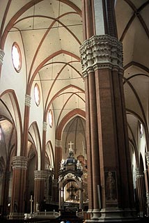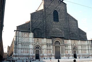 . Az új egyetemi épületet is megnéztük – az is elég régi (XVI. sz-i), de az egy keskeny utcában van, gyakorlatilag fényképezhetetlen. A St. Petronio dóm óriási, gótikus stílusú templom, a félbe maradtak kategóriának mintapéldánya – még szerencse, hogy nem építették meg teljesen a megalomán elképzeléseknek megfelelően, lehettek volna gondok, mint ahogy a franciaországi Beauvais-ben láttuk a következményeket, vagyis, hogy a beomlott a főhajó az évszázadok során. A hosszház külső oldalán érdekesek a tervezett továbbépítés indító részei – a pillérkötegeknél leginkább. A pénz elfogyását az is mutatja, hogy a homlokzatának díszesnek induló márványhomlokzata 5-7 m magasságig készült csak el – az gyönyörű – fölötte azonban csak az egyszerű tégla látszik. A főtér közepén a városháza épülete is csodálatos. A város két ferde tornya bennünket is megállított, a nagyobb a magasságával is bódító – közel 100 m a magasabb. Nekem nagyon tetszett a kereskedelmi palota is a XIV. századból. De a legnagyobb élmény a ma Santo Stefano templomegyüttesnek nevezett ún. Jeruzsálem volt. Ez egy szépen sorban épített 7 templomot jelent, a legkésőbbi a XVII. századból való, de a többi legfeljebb gótikus stílusú – ma 4 templom áll belőle. Egymásból nyíló, szinte labirintust alkotó, több rétegben is épült együttes, mintegy a jeruzsálemi templomot akarták maguknak felépíteni. Megkapó és lenyűgöző, de sok szép jelzőt lehetne még találni rá.