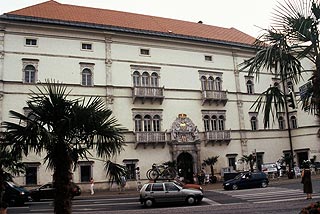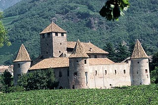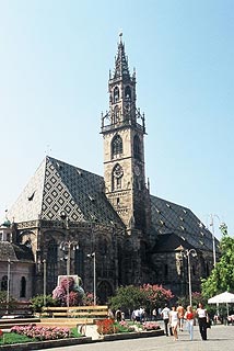 Korán elindultunk, és az első város Bolzano, németül Bosen volt – Dél-Tirol fővárosa, ahol már évtizedek óta német egyetem is van, amiről az autonómia pl. Erdély autonómiája témakörében érdeklődők, sokat hallhattak már. Ez a műemlékeket tekintve alapvetően német város ma is, annak ellenére, hogy a fasizmus alatt erőteljes olaszosítás és betelepítés volt. Parkolni elég messze sikerült a történelmi belvárostól, egy, a fasiszták által épített városrészben, a várost átszelő folyó túlsó partján. A belvárossal összekötő fő híd külső hídfőjénél egy klasszikusan Mussolini korszakos diadalív volt – vesszőnyalábbal (latinul fasces, innen a mozgalmuk neve) és egyéb jelképekkel. Maga az óváros kellemes, igazi rendben tartott német építkezésű hely, központjában a gótikus dómmal. A templomban felfedeztem az új Metzler orgonát, amely 1997-es építésű, így egy volt csoporttársunk által készített sípok mindenképpen szólnak benne. A Metzler svájci cég, az orgonakészítés egyik csúcsa, amely nyugaton sok remek hangszert épített. A kicsi, koraközépkori várba is sikerült bejutni, ma kulturális központja a városnak – főleg konferenciák és koncertek vannak benne. Az udvart teljesen lefedték ponyvával, úgy, hogy azért szabadtéri jellege legyen – legalábbis ami a levegőt illeti. Különösen a nagyterme volt érdekes – a falak nem egyenesek, hanem egyenetlenek voltak, alsó részén kárpitot utánzó festéssel. Több helyen növénymintás díszítés is volt, s a fagerendás mennyezet méretei is megnézésre érdemesek.