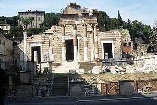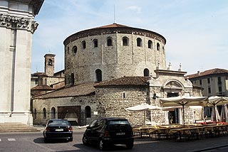 A délután Bresciáé volt, nem kis megpróbáltatást jelentve. A Dómtér egyik legszebb épülete a Rotonda (Régi Dóm), egy XI. századi körtemplom. A templomtérbe lépcsőkarélyon lehet lemenni, a mélyebb járószint kicsit a külvilágot is kizárja és elcsendesedik a turista is. De a régi városháza több épületből álló együttese – a XII-XIII. századból. Itt antik emlékek is voltak, a római fórum és egy színház romjai. Én nagyon szeretem az antik dolgokat, különösen vonzanak az ilyen maradványok. Múzeumba nem volt erőnk bemenni, túl nagy falat lett volna a középkori keresztény művészetet bemutató óriási régi kolostor-épület. Inkább a szintén középkori várba mentünk fel, ami szintén nem kis megpróbáltatást jelentett a kánikulában.