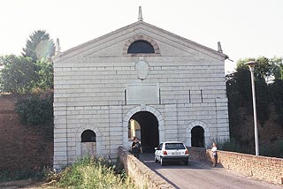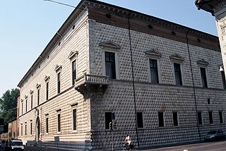 Hétfőn a tengerparti célpont volt a meghatározó, de ha már útba esett, délelőtt Ferrarát néztük meg. Sikerült a vár (Este-palota) mellett közvetlenül parkolót találni – mint utólag kiderült, ott nem is lehetett volna bemenni, ahol bementünk, pláne nem lehetett volna leparkolni, de csak nekem tettek oda a szélvédőre 101 €-s (!) cédulát, a kettővel odébb parkoló barátom kocsijára nem. Hétfő lévén csak az épületet csodáltuk meg – az udvarát is, aztán tettünk egy sétát. Savonarola szobra (nem épp kedvencem) és két antik oszlop mellett mentünk a dóm felé, ami egy hihetetlenül nagy építmény, talán az oldala még érdekesebb, mint a homlokzata. A középkor óta van a hosszházhoz hozzáépített üzletsor, ahol ma is mindenfélét árulnak, a képeslaptól az elektromos berendezésekig – ami máshol is előfordult, de én itt találkoztam ilyennel először, így eléggé mellbevágó volt. A város erődített faláig kimentünk az egyik kapunál, impozáns még a mai kor szemével is, romos állapotában is – kb. 6 m magasságú. Megnéztük még a szintén híres Gyémántpalotát a XVI. századból – a homlokzata sok kicsi vízszintesre elfordított „piramis”-ból áll.