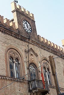 A parkolással itt is volt gond, mert nem volt elég aprónk, így itt is papír lett a vége – 33 €, ami disznóság, mert maximális 2 órát kifizettünk, és kb. 1 órával maradtunk tovább – de hát Bologna annál szebb és nagyobb, mint hogy két óra alatt meg lehessen nézni. Ez az idő is csak a legfontosabbak végigrohanására volt elég. A dominikánus templommal kezdtünk, itt van Szt. Domonkos sírja is, aminek egy kis részét Michelangelo alkotta. A régi egyetem épülete a dóm mellett, lenyűgöző volt, a sok címerrel és a helyreállított boncteremmel. A címerek között több magyar diákét is felfedeztük, hiszen egy időben sokan tanultak itt a Magyarországról.
