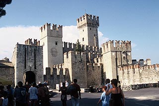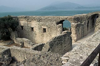 Délután kimentünk a Garda-tó déli partjára, és Sirmione földnyelvén fürödtünk egyet. A Garda is egy-másfél méterrel alacsonyabb, mint korábban. Ennek megfelelően iszonyatosan éles köveken kell bemenni vagy 70 métert, hogy úszni is lehessen az egyébként remek vízben. Másfél óra után felkerekedtünk és Sirmione világhírességei felé vettük az irányt, előbb a Scaligeri-várat néztük meg, amelyet a kis félsziget nyelénél remekül tervezve építettek meg. A magas falairól remek kilátás van, így a szerkezetét jól lehet látni, no és a tóra is szép a kilátás. A várnak több udvara is van, kőcsipkés falai és tornyai – ezek persze nagyon attraktívak, természetesen a lőfegyverek kora előtti védelmi képességekkel. Innen a Catullus grottáinak nevezett római kori fürdőkomplexumhoz mentünk a földnyelv végére, ami több km-re van. A kánikulában kimerítő séta volt, de megérte az elég jelentős területű romkert.