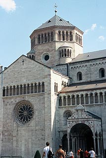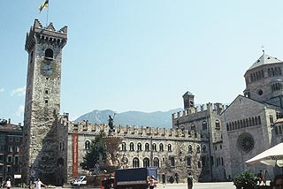 Következett Trento, magyarul Trident. A főtéren a román stílusú dómot sikerült megnézni, a híres zsinat valamikori helyszínét – csak kivártuk, míg véget ér a szieszta. Nekem meglepő volt a kevés díszítés, egyfajta komorságot mutattak a falak és a sötét. Persze a zsinat alatt, és egyáltalán a középkorban a díszítést, a pompát a textilekkel érték el, és az egyéb, ideiglenes építményekkel – pl. trónusokkal. Ezzel együtt nem éreztem magamat rosszul benne. A várba – Castello del Buonconsiglio – is felmentünk, sőt végigjártuk a termeket. Épp egy zongorakiállítás volt benne, hihetetlen értékű muzeális hangszertömeg volt benne – legalább 100 hangszer – az utóbbi 3-4 évszázadból. Csak Pleyel zongorából, pianínóból 4 volt, amelyek pótolhatatlan értékek! Sajnos nem lehetett kipróbálni őket. A hangszerek miatt temperált, kellemes hűs volt a levegő, nagyon jól esett a kinti hőség után. A termeket jól meg lehetett nézni, a különböző korok építési módjait figyelni. Az egyik teremben a vár urainak képei voltak a freskókon, köztük Zsigmondot –német-római császárt – is fel lehetett fedezni, s tán még Habsburg Albertet – mint magyar uralkodókat.