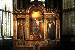Az utolsó nap már hazafelé útra volt tervezve, így elköszöntünk házigazdánktól. Velencét vettük célba, tudtuk hogy nem kis próba vár ránk. Az érkezés még viszonylag egyszerű volt, a parkolóház 18 €-s díja azonban mellbevágó volt. Az olaszok nem a precizitásukról híresek, itt sokszorosan bizonyítottak. Csak kérdezősködés és sok bizonytalanság után sikerült megtalálni a vaporettót – egyszerűen nem volt kitáblázva normálisan. Fejenként 5 €-ért a Nagy Csatornán mentünk be a Szent Márk térre, és innen terveztük a visszacsorgást az autóhoz. Látványos volt az út. A Szent Márk téren egyből láttuk, hogy a San Márk Bazilikát nem fogjuk látni, hiszen mindkét irányba „Mavzolej Lenyina” szintű sorok kígyóztak, soronként 2-3 emberrel, és szinte meg sem mozdultak. A tenger irányában a Doge palota tenger felőli végéig állt a sor. Viszont a Campanilébe fel tudtunk menni – 6 €/fő – ahonnan szép kilátás nyílt a városra. Ezt követően bementünk a Doge palotába, ami szintén fárasztó séta volt, de óriási hatású. Ezt követően az óratorony felé elhagytuk Velence szívét, és a Frariba vettük az irányt. Itt az épületen kívül a Bellini és a Tiziano oltárok is vonzottak – sok évvel korábban egy rohanás során már volt szerencsém látni.