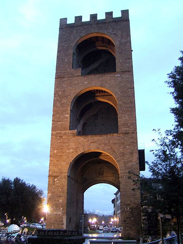 Gyalogutakon, lépcsőkön jutottunk le az Arno partján álló, XIV. századi Szent Miklós toronyhoz, mely a város talán legnagyobb, többemeletes középkori városkaputornya volt. Ezzel újra az Arno-parti sétányra értünk, és egy kis kitérővel, a Ponte Vecchión keresztül mentünk vissza a szállásra az Oltrarno negyedbe (ez is az óváros “budai” részén van).