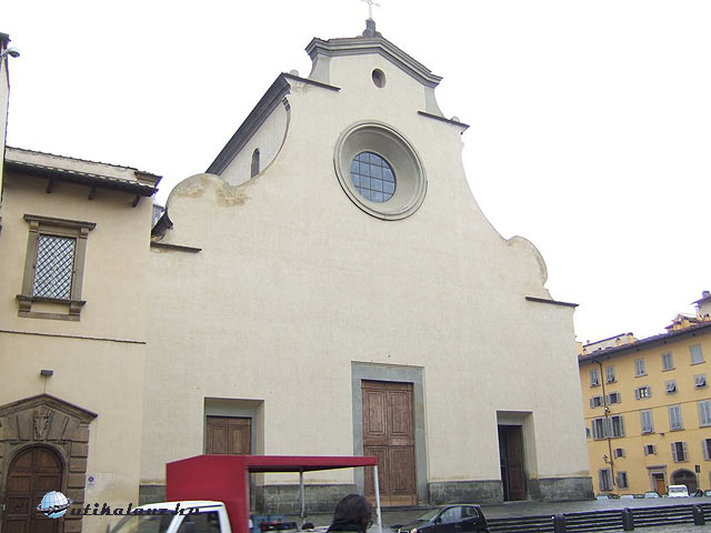 Keskeny utcán ámuldozva jutottunk el a Santa Trinita templomig. Még szerencse, hogy készültem az útra, így nem csapott be a barokk homlokzat. Bent gótikussá visszaformált formák és csodálatos Ghirlandaio-freskók vártak ránk a XV. századból. Vele szemben a Palazzo Spini-Feroni eredetileg XIII. századi, erődített palotaépülete áll, ami szintén nagy kedvencemmé vált – sokszor mentünk el mellette. Ekkor derült ki, hogy a fényképezőgépem megadta magát, így nagyon ideges lettem. (Ezért van nagyon kevés kép az útleírásban, a többiekhez képest.) Nem is nagyon tudtam figyelni az Arno partján nyugatra menve a Chiesa Ognissantira, vagyis a Mindenszentek templomára, így nem is igazán fogtam fel pl. Giotto keresztjét vagy Botticelli, Ghirlandaio festményét. Egyébként a reneszánsz templom barokk homlokzatot kapott a “szokásoknak” megfelelően.