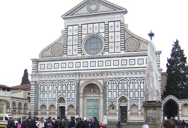 A XIII-XIV. században építették a Santa Maria Novella templomot, ennek megfelelően alapvetően gótikus – homlokzata későbbi, de azonos stílusban készült el. A bejáratok oldalról vezetik be a látogatót a templomba, így a főhajó útikönyvekben leírt optikai hatása nem tud érvényesülni. Andrea Orcagna XIV. századi Utolsó ítélet freskója a Strozzi-kápolnában, a szentélyben pedig Ghirlandaio alkotásai vannak – mindkettő óriási hatású, nagyon színes – az utóbbi egyfajta képes Biblia. A kerengők is gazdagon díszítettek, de nem lehetett mindent megnézni. Itt is el lehet egy fél életet tölteni, ha mindent részletesen képes megnézni az ember.