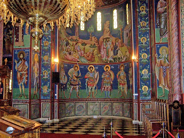 A kocsit a város központjában egy mélygarázsban parkoltuk le a Kongresszus téren. Elsőként a Parlamentet szerettük volna meglátogatni, de valamilyen hivatalos rendezvény miatt nem volt lehetséges. Folytatván városnéző utunkat, megtekintettünk egy szerb ortodox vallási helyet, a Szent Cyril és Method templomot. Nagyon érdekes volt, mert ilyen templomban korábban még nem jártunk. Rendkívül díszes templombelsőt láthattunk.