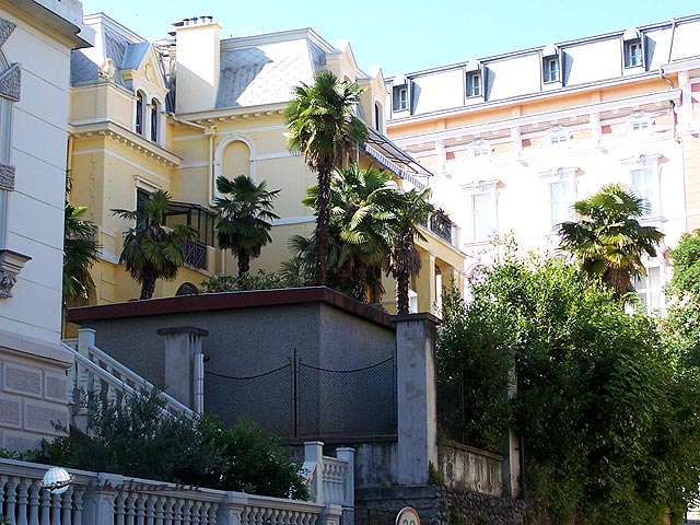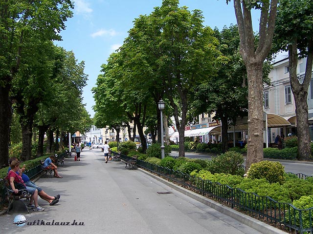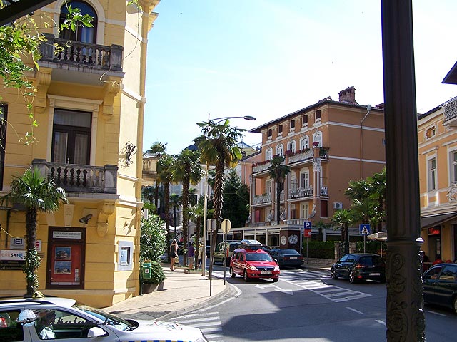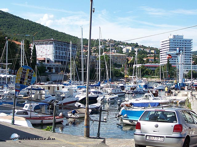 Hátra volt még egy kis nézelődés Opatijában. Legnagyobb gondot a parkolás okozta, alig sikerült parkolóhelyet találni. A város tényleg Monte Carló-i hangulatot éreztet. Gyönyörű, gondozott parkok, rengeteg virág mindenütt, pálmafák az utak mentén, a házak kertjeiben. A tisztaság, a rend a jellemző mindenhol.