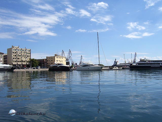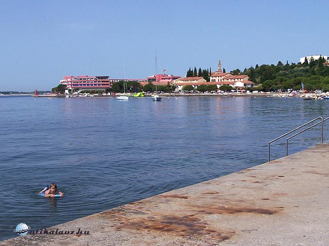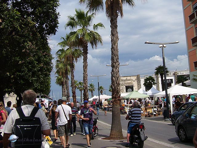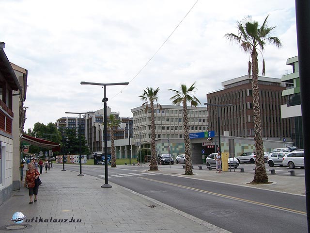 A mólóhoz vezető sétányon éttermek, pizzériák sokasága várja az éhes turistát. Minden területet kihasználnak, amelyik étteremben ettünk, annak például a sétány mindkét oldalán voltak asztalai, a pincérek az úttesten át hozták az ételeket. Ennek a városnak szépségét Piranhoz hasonlítanám, de itt szerencsére nagyobb volt a nyugalom, kevesebb a turista. Magyar fiatalokkal is találkoztunk, ugyanis nemzetközi ifjúsági kézilabda torna zajlott az egyik parkban felállított pályán. Gyorsan eltelt a délután, s elindultunk, hogy még átránduljunk egy közeli olasz városba, Muggiába.