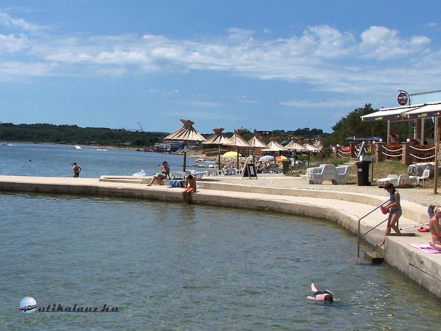 Baskáról visszafelé a 102-es úton a Punat-i bevezető útnál álltunk meg. Itt egy csendes öblöt találtunk, parkolóval, vitorláskikötővel, stranddal, öltözőkkel, étteremmel, büfével. Szinte családias hangulat, alig néhány ember volt ezen a mindennel felszerelt, kissé kieső helyen. A víz kitűnő, kristálytiszta volt, az itt jellemző kavicsos tengerfenékkel. Jót fürödtünk, pihentünk és ebédeltünk.