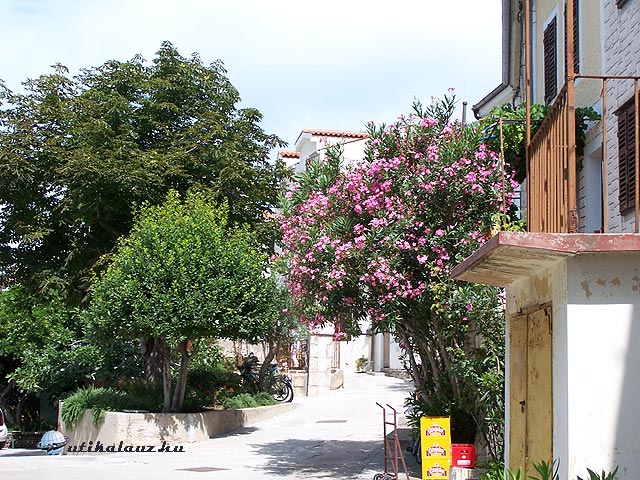 Rengeteg teraszos étterem, kávézók, fagylaltozók vannak végig a parton. Visszafelé egy felső utat választottunk. Jellemző mediterrán hangulatú, sűrű beépítésű, néhol sikátorszerűen keskeny utcácskákon jutottunk vissza kiinduló helyünkre. Leanderek, fügebokrok, virágok, pálmafák minden hasznosítható földdarabon.