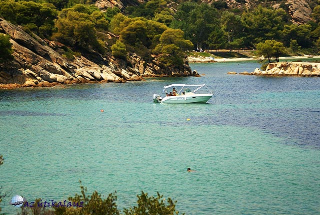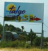 Mi találtunk egy nagyon szép kis öblöt, a Talgo-t. A táblát le is fényképeztem hol kell lekanyarodni. A tenger a parttól 10 méterre tiszta finom homok. A parton van bár, szól a zene is.