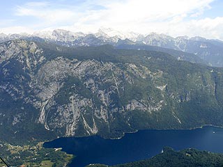 A következő reggel elhatároztuk, hogy megkeressük a Bohinji-tavat. Magához a tóhoz nem mentünk le, ugyanis izgalmasabb programot találtunk ki: megkerestük a Vogel nevű hegy felvonóját, hogy szívhassunk egy kis igazi tiszta levegőt. A szép modern kabin emberekkel telezsúfolva kb. 10-15 perc alatt ér fel az 1600 méteres hegy tetejére, de annyira lenyűgöző még ez hering-utazás is, hogy megéri. A hegy tetejéről tovább lehet utazni egyszemélyes felvonóval egy még magasabb helyre is, illetve gyalog le lehet sétálni Bohinj városba.