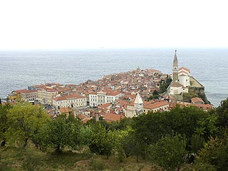 Másnap elhatároztuk, hogy nem Portorozban fogunk strandolni, hanem a szomszédos Piranban. Ez a városka egy igazi gyöngyszem, százszor jobban megéri itt kipróbálni a tengert, mint a zajos és nyüzsgő Portorozban. Piranban a legelső szembetűnő dolog, hogy csak a helyiek mehetnek be autóval, illetve, aki hajlandó méregdrága parkolási díjat fizetni. Mi (ahogy rajtunk kívül mindenki más is) a városkapunál lévő parkolóban hagytuk az autót, s onnan gyalogszerrel tettük meg a kb. 2 km-es utat a városba.
