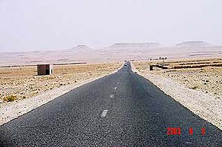 mivel egy majdnem nyíl egyenes betonút visz odáig a kősivatagon keresztül.