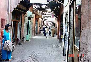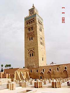 A kocsihoz visszaérve jó teveszagúan behajtottunk a belváros irányába. A városfalon kívül egy sikátorba leállítottuk a kocsit, és kezdetét vette a nagy séta. A városfalon belül a káosz még nagyobb. Az emberek az utcára ürítenek kis és nagy dolgukat. Mellette 50 fok van, így az egész belső város egy nagy latrinának hatott. Egyik pillanatról a másikra kikeveredtünk a turista övezetbe, ahol már viszonylagos tisztaság uralkodott. A Kotubia mecset szép, egzotikus látvány. Volt olyan helyi, aki be akart minket a mecsetbe vinni, de nem kértünk belőle, mert ha elkapnak megbüntetnek.
