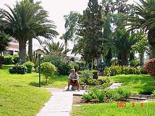 A hotel megérdemel még pár szót! Első dolgunk volt feltérképezni a trópusi kertet, amiben betonjárdák vezettek keresztül kasul. A szerecsen fűszerárus azonnal üvöltve integetve üdvözölt. A telek jobb szélén egy hatalmas úszómedence volt, melynek közepén egyedi híd ível át. Körülötte ingyenes napágyak sorakoznak, valamint egész nap megy az animátorok bohóckodása. A szálloda egy több emeletes utcafronti főépületből áll, mely közvetlenül az agadiri főutcára nyílik. Ezen kívül több kétemeletes épületblokk van, melyek a szálloda trópusi kertjét a tengerparti út felől határolják. Ezek egyikében laktunk mi is. Kis tó, teknős, vadkacsa, egzotikusnál egzotikus növények és hatalmas terület jellemzi a kertet, ami a szálloda dísze.