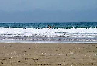 A víz még mindig hideg volt, ami egész nyaralásunk alatt nem emelkedett 22 c fölé. Ez az óceán hőmérséklete, és punk-tum. A hullámok a földközi tengeren megszokottaknál 10 szer nagyobbak. Én, aki már a California “Beach boyokkal” szörfölgettem gyerekkoromban Los Angeles tengerpartján hónapokig, nagyon tudtam értékelni az évtizede nem látott óceáni hullámokat. Úgynevezett buggie boardot a parti boltokban 20-30 dirhamért lehetett kapni, de normál szörfdeszkát sehol nem láttam sem eladót sem bérelhetőt. Így maradt a body surfing, amihez ugye csak a saját testemtre volt szükség. Ráfeküdtem a hullámra, és siklottam a taraja előtt. Nagyon élveztem.
