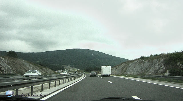 Olcsó kis GPS-embe, melyet még karácsony előtt valami akcióban vettem, beprogramoztuk a végcélt. Utunk magyarországi szakaszán gyakorlatilag csaknem végig autópályán mentünk, kivéve a határ előtti szakaszt, Nagykanizsára betérve egy benzinkútnál tankoltunk s haraptunk egyet, aztán irány a határ!. Szerencsénkre az utazáshoz nem volt túl meleg, kissé lógott is az eső lába – bár igazából nem esett.
