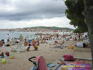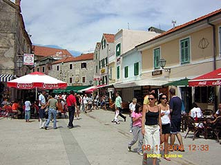 A szállásunk nagyon barátságos, tengerre néző erkéllyel, nagy terasszal a Vodice melletti Srima nevezetű helységben volt. Itt gyors alvást rendeztünk le délutánig, azután aprócska evés és kicsomagolás. Estére pedig kis környezettanulmányi séta. Le a tengerpartra és be a városba. Szerencsénkre a sógoromék pont az alattunk levő lakrészben voltak, így az ottani nagyobb étkezőben rendeztük meg mindig a közös evészeteket. A mi teraszunk közös volt az ugyanazon emeleten elhelyezett szomszédokkal. Néha egy-egy sörözést, a másnapi útvonal- és programtervezéseket azonban ott ejtettük meg.