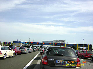 Az első kapunál már az útleírásokból megtudva elvettük a jegyet és aztán nyomás. A kijáratnál a 36 kunát bankkártyával fizettem ki, semmi gond nem volt vele (és azzal legalább nem tudnak becsapni). A Zágrábot elkerülő ingyenes szakasz után aztán ismét fizetős részen haladtunk tovább az elágazásig. Onnantól egészen Benkovacig újra pályán gyűrtük a kilométereket. Óriási volt a tömeg, mindenki aznap éjjel igyekezett a tenger felé. Hosszú tömött sorokban, a sávokat kitöltve egyenletes tempóban suhantak az autók. A két hosszabb alagút előtt kissé feltorlódtak a sorok, mivel csak az egyik alagút üzemelt és a teli sávokat valahogy eggyé kellett préselni, ami aztán eléggé araszolósra vette a tempót. Jó fél óra múlva a második alagútból kiérve már a hajnali friss tengeri meleg levegő és a megvirradó nap köszöntött bennünket.