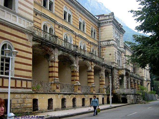 A várost átszelő Cserna patak mellett parkoltunk le, innen indultunk felfedező útra. A monarchiát idéző paloták szépek, de nem lakják. Látszik a próbálkozás, hogy felújítsák őket, de csak néhány, megkezdett, majd félbehagyott munkálat nyoma fedezhető fel. A híd mellett szecessziós stílusú, üvegezett folyosó vezetett át, hogy a gyalogosok ne ázzanak meg a szálloda és a fürdő között. A valamikor szebb napokat látott fürdő, ma kong az ürességtől és az elhagyatottságtól. A betört ablakon bekukucskálva, arra hogy itt valaha fürdő volt, mindössze a víz kénes, kellemetlen szaga emlékeztetett.