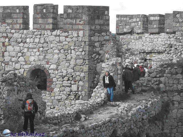 A továbbiakban Galambóc várát jártuk be. Mintha a sziklából nőnének ki a tornyok, úgy épült a hegyre Galambóc. Az út egyenesen vezet a várnak és eltűnik alatta egy alagútban. Romos lépcsők, boltívek alatt sétálunk át. Sem a Dunán, sem szárazföldön nem kerülhetjük ki Galambóc várát. Falainak nagy része a Vaskapu erőmű miatt megemelt Duna vízszintje alá került. A vízből kiálló festői szirtek bűvöltek el bennünket. A következő képek Galambóc váráról készültek.