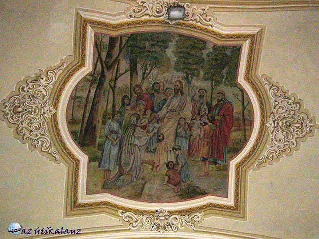 A görögkeleti templom kivülről, az oltár és egy freskó
