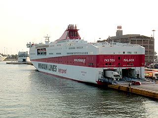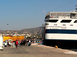 Egy Pireuszból este induló hajó reggel ér Krétára: a direkt járatok (az Anek és a Minoan nagy hajói) 8-9 óra alatt, a LANE Rodoszra tartó és Krétát útba ejtő kisebb hajója 12-14 óra alatt.