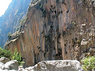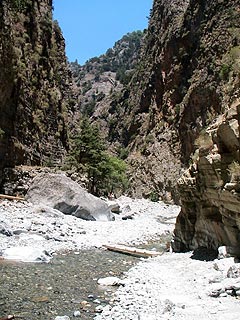 A szurdok: kutyagolás 6-8 óra Omalos-ból le Agia Roumeli-re (déli part). Kell legalább egy frankó edzőcipő hozzá, de nem vészes, csak bokaszaggatóan köves az út. Forrás óránként az út mellett. Maga a túraút, a völgy gyönyörű, 1250 m szintkülönbség lefelé! Nagyon jópofa, csíkos közet kiséri az utat: valószínűleg bazalt rétegződött tengeri üledékes mészkővel, nagyon szép vetődéses képződmények. A fenyőfák meg helyenként a 100 m magas sziklafalba, a semmiben vertek gyökeret.