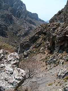 Úton a népszerű Preveli-kolostor és Preveli édesvízű folyóval színes(ített) tengerpartja (közkeletű kifejezéssel Beach :)) felé, az út áthalad a szurdokon. Lenyűgöző karsztjelenség. Északi bejáratánál állítólag még látható a víz az alján, kis kőmedencék forrással; később eltűnik a karsztban (mi nem találtuk meg a helyet).