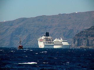 Krétáról sok iroda ajánl 80-90 Euro-ért egy napos kirándulást gyors katamarán hajókkal, de még így is 2×3 órát úton van az ember. Azt hiszem, mindegyik túra a heraklion-i kikötőből indul. De jobb, ha így – mint mi – jövet, vagy menet útba ejted. Habár egy rövid nap kevés.
