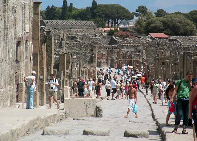 A romkert az autópályától a hegy felé, közvetlen a vasútvonalon túl, a Pompei Scavi állomás mellett kezdődik. A látnivalókat részletesen taglalják az útikönyvek.