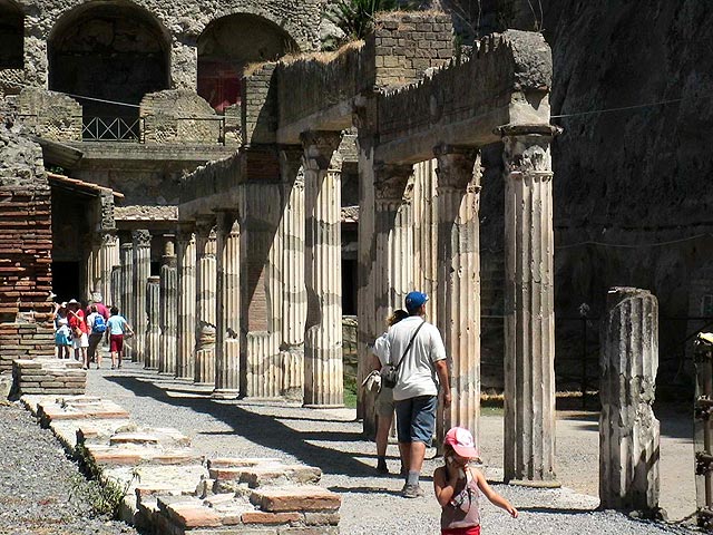 A romváros itt egészen a tenger közelében fekszi. A történetírók szerint a levegő nagy nedvességtartalma szerepet játszott abban, hogy a betemetett épületek faszerkezetei, emeletei, födémje, csatornarendszere nagyobb épségben maradt meg. Fentiek okán azonban állítólag a régészeti feltárás is nehézkesebb. A kiömlött láva a tengerpartot az ókori várostól úgymond „előrébb tolta”, ma a romkert attól mintegy 5-600 méterre fekszik, mint egy nagy gödör. Területe Pompeji-énél sokkal kisebb, de bejárására így is rámegy 3-4 óra.