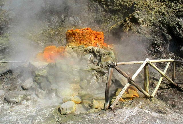 Semmi vulkáni tevékenységre utaló jel, de a szakértők azt mondják: a nápolyi térség alatt 1,5 kilométer mélyen húzódó hatalmas lávató tevékenysége egyre fokozódik. Erre utaló jeleket majd a Solfatará-ban láthatunk. Aggodalomra azonban semmi ok, egy kitörés ma már idejekorán felismerhető előzményei még nem jelentkeznek.