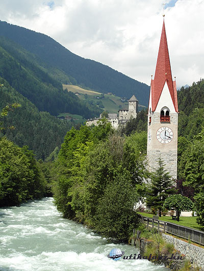 A Campolongo-hágó már kívül esik Dél-Tirol határán, ez már olasz terület, de már kanyarodtunk is vissza Tirolba. Végigautókáztunk a Gader-völgyön, amely St. Lorenzennél csatlakozik a Puster-völgybe. Itt két vár is található: az egyik a Sonnenburg szállodaként üzemel, a másik Michelsburg, mely romos, de szép. Nem mentünk be egyikbe sem, mert errefelé olyan bőségben találhatóak a várak, várromok, hogy csak a legszebbekre jutott időnk.