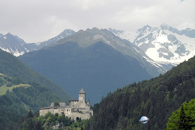 Reggel 6-kor kinéztem az ablakon, és akkora volt a köd, hogy a hegyek nem is látszottak. Borult, párás idő volt. Elindultunk a közeli Taufer-völgybe, és mire odaértünk, már ragyogóan sütött a nap. A mindössze 45 km hosszú völgy központja Sand in Taufers. A falu fölött magasodó lovagvár (Burg Taufer) Dél- Tirol egyik legjelentősebb és legszebb vára.