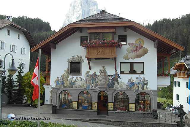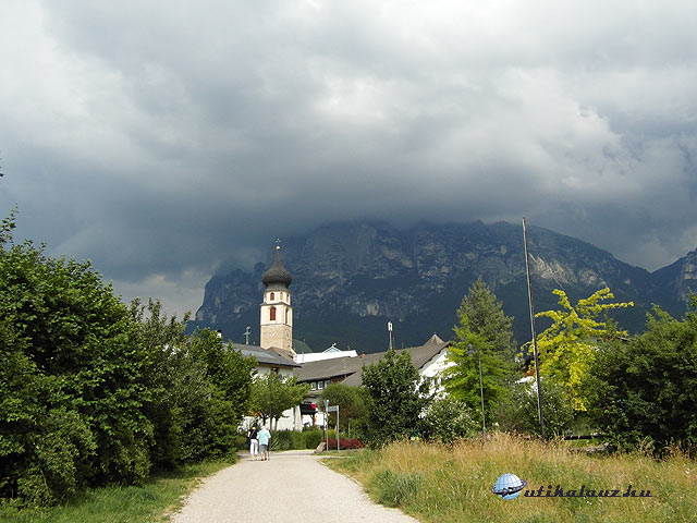 Ragyogó napsütésre ébredtünk, ezért úgy döntöttem, hogy ma látogatunk el a Dolomitok vidékére, hiszen csak tiszta időben lehet igazán élvezni a kilátást, valamint a fotók miatt sem mindegy. A mühlbachi-szoroson át Brixen felé haladtunk, majd letértünk az Eisack-völgyében Bozen felé vezető főútra. A főútvonal az autópályával párhuzamosan halad, kissé kanyargós ugyan, de jól autózható és jó minőségű. Nem érdemes igénybe venni az autópályát. A bozeni útról lehet megközelíteni a fafaragóiról híres ladinok lakta Grödner-völgyet. Három falu található itt: St. Ulrich, St. Christina és Wolkenstein. Mi St. Christinában álltunk meg, ahonnan szépen látszik a 3181 méter magas Langkofel. Bementünk két ajándékboltba is, ahol a fafaragásokat a vevők előtt, a helyszínen készítették. Nagyon érdekes volt, de az árak igencsak húzósak voltak, így nem is vettünk semmit.