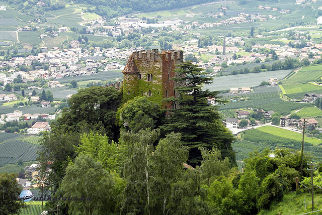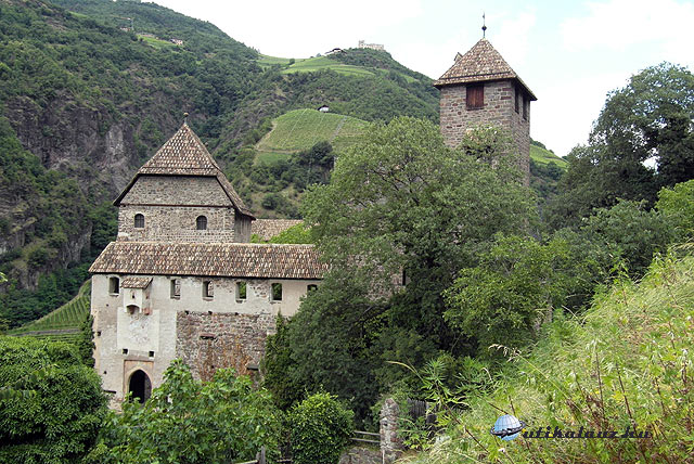 A Bozen-Meran útvonalon indultunk el, kissé borongós időben, Schenna várkastélyához. Schenna Merántól 10 km-re található, egy tipikus tiroli falu, tiszta, virágos, sehol egy málló vakolat, sugárzik a gazdagság. A vár és a templom környékén látható ciprusok pedig mediterrán hangulatot kölcsönöznek a falunak. A várkastély vezetéssel látogatható, belépő 8, illetve 3 euro. A vezetés német nyelvű, audio-guide is igényelhető, de csak két idegen nyelven, angolul és olaszul. Schenna leghíresebb tulajdonosa Habsburg János főherceg volt, aki Bad Aussee postamesterének leányát, Anna Plochlt vette feleségül, ezért le kellett mondania dinasztikus jogairól. A botrány elmúltával Annát kinevezték Meran grófnőjévé, közös utódaik is csak ezt a címet viselhették. A várkastély ma is az ő tulajdonuk. A szép régi bútorok, festmények, és egyéb berendezési tárgyak mind eredetiek, szinte érezhetjük magunk körül a történelmi levegőt. Semmi mesterkéltség, igazi hamisítatlan főúri miliő.