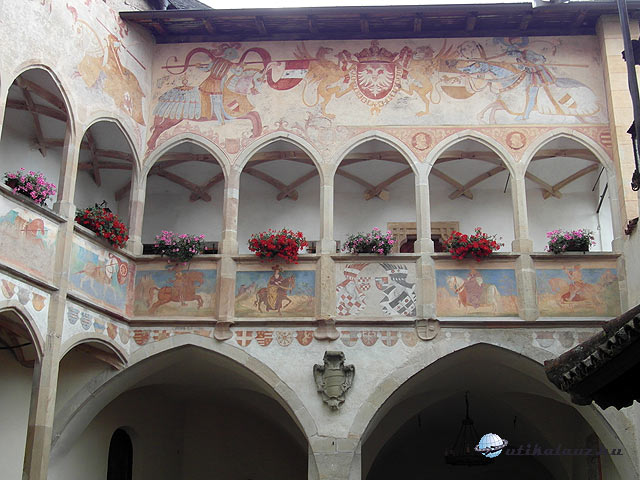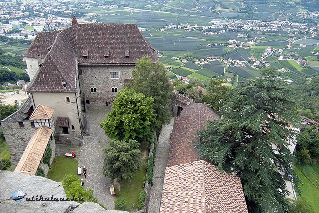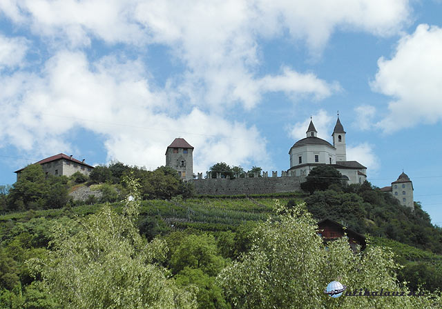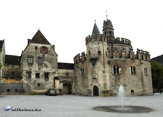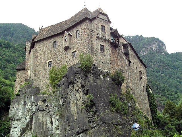 Klausen megtekintése után Bozen felé haladtunk tovább, az Eisack völgyében. Barbiannál átmentünk a folyó túloldalára, ahol egy kis falu, Waidbruck található. Waidbruck főteréről indul a gyalogút az igencsak magasan álló Trostburg várához. Az egyik leglátványosabb vár Dél-Tirolban. Csak gyalogosan lehet megközelíteni, legalábbis én semmilyen más utat nem fedeztem fel. A vár igencsak magasan van, és szerfölött meredek az út. (A reifensteini nyugdíjascsoportnak ez egy hetes kirándulás lett volna.) Szerencsére nyárias időt fogtunk ki, izzadtunk is rendesen, de megérte. A vár rendkívül szemrevaló. A belépő 7 euro, gyerekeknek 4. Tirol nevezetes szülötte, Oswald von Wolkenstein, híres minnesänger, az ő vára Trostburg. Wolkenstein lovag egyébként tagja volt a Luxemburgi Zsigmond alapította lovagrendnek, a Sárkányos Társaságnak is. Ezen a tájon virágzott a lovagi költészet, úgy termett a minnesänger, mint a gomba. A Wolkenstein-Trostburg grófi család 1967-ig birtokolta a várat, ekkora átadták a dél-tiroli várszövetségnek, és megnyitották a látogatók előtt. A vár kívül-belül szép, elsőrangú látványosság.