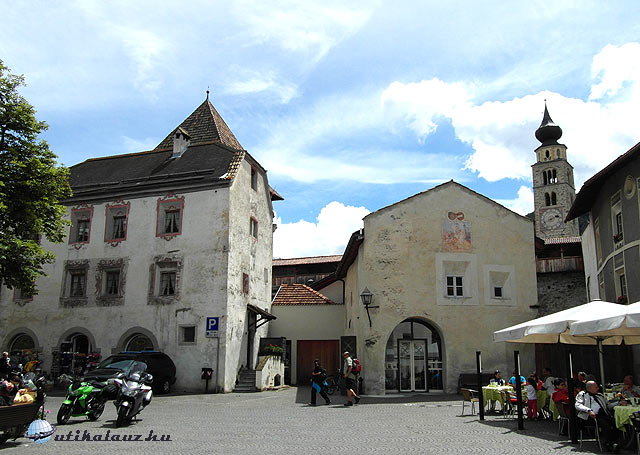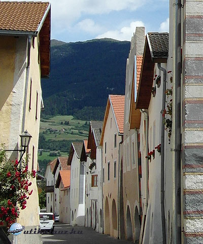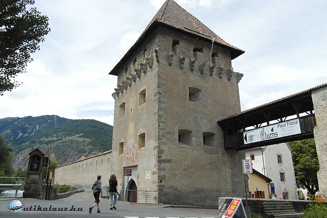 Ezután a Fürstenburgot néztük meg. Egy részében iskola van, másik része látogatható, de ezt most kihagytuk. Nem hiszem, hogy Churburg után elkápráztatott volna bennünket. Burgeis felé jövetben már átutaztunk Glurnson, most visszamegyünk, hogy alaposabban is szemügyre vehessük Dél-Tirol legépebben megmaradt, falakkal körülvett középkori városát. Glurns egy igazi gyöngyszem. Nem nagy város, mindössze 750 lakója van, de valami csodaszép. A városfalak és a rondellák, valamint 3 kapuja igazi középkori hangulatot kölcsönöz neki. Mivel nem nagy város, egy óra alatt be lehet járni. Legszebb utcája a Laubengasse.