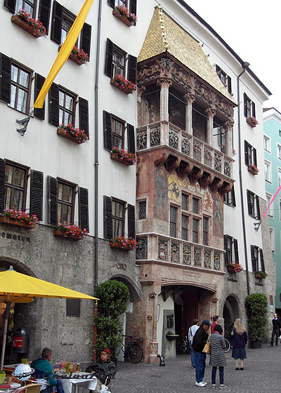 Volt még annyi időnk, hogy kicsit körülnézzünk Innsbruckban. Az óváros közelében, egy mélygarázsban sikerült parkolni. (2 euro/óra). Innsbruckban nagyon kellemesen csalódtam. Nem is gondoltam, hogy ilyen szép, hangulatos óvárosa van. Különösen tetszett Innsbruck jelképe, a Godenes Dachl, egy gótikus erkély, melynek a tetejét aranyozott rézlemezek fedik. Nem hagytuk ki a Diadalkaput, és a Szt. Anna oszlopot sem. Sajnos a Hofburgra és Hofkirchére már nem volt időnk, ezt majd egy más alkalommal pótoljuk. Innsburckban rengeteg a turista, mi több magyar csoporttal is találkoztunk, de persze nem velük volt tele a város.